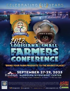 Alexandria, La. – The Southern University Agricultural Research and Extension Center will host its 12th Annual Louisiana Small Farmers Conference, September 27-29, 2023, at the Randolph Riverfront Center – Alexandria, Louisiana. This year’s theme is “Bring Your Farm Products To The Marketplace,” highlighted through four educational tracks that farmers can choose that meet their individual farm needs. Producers will be able to speak directly to experts on specific topics relevant to their operations and gain knowledge about new and innovative practices that are being used on today’s farms.