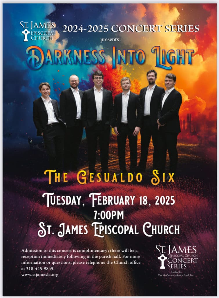 Award winning British vocal consort, The Gesualdo Six, makes its Louisiana debut singing a concert of atmospheric choral works exploring the transition from darkness into light. The group records for the presitigious British Hyperion Records and will have a selection of their compact disk recordings on hand for purchase and autographs. Join us for the […]