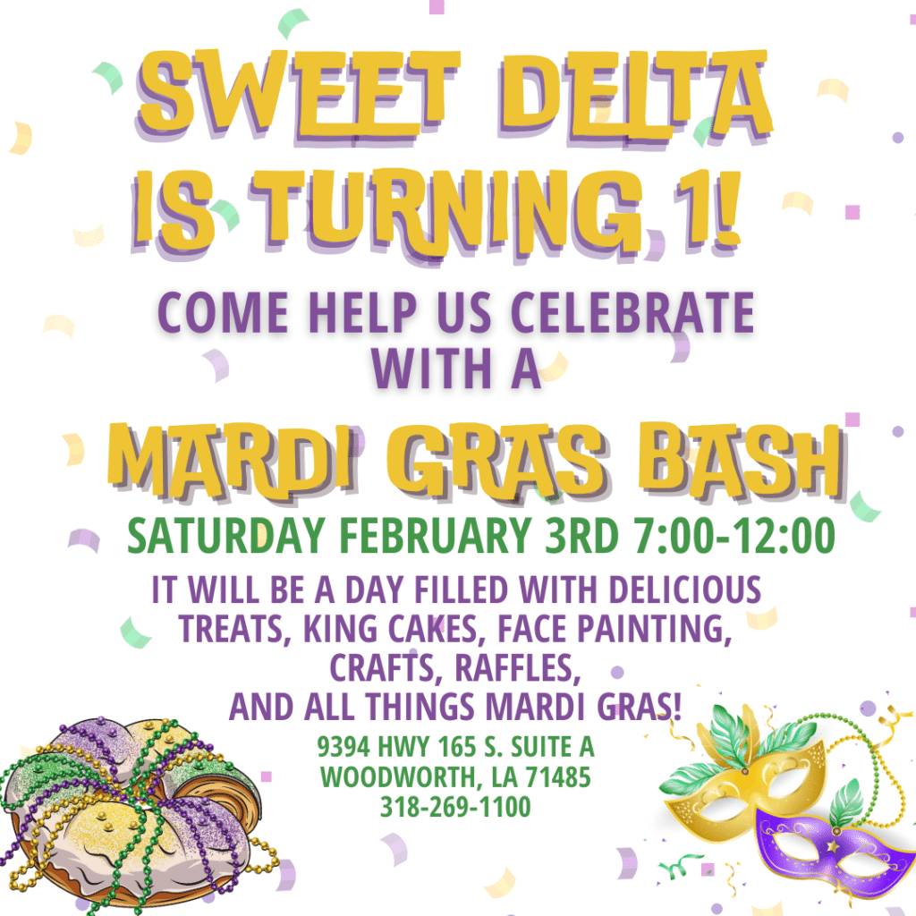 🎉Sweet Delta is turning 1!! 🎉 Come celebrate with us as we mark our ONE-YEAR milestone with a Mardi Gras Bash on February 3rd! It will be a day filled with delicious treats🍪, Mardi Gras face painting🎭, king cakes, raffles🧁, and so much more!! Let the good times roll! 🎉 💜Let’s make memories together! 🎭 […]