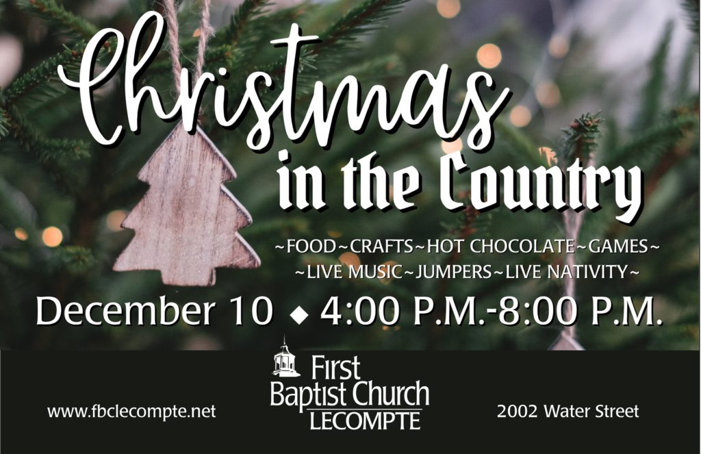 Christmas in the Country is a “Hallmark Christmas Movie style Christmas festival” with a focus on the true meaning of Christmas. We have live music, a live nativity, hot dogs, jambalaya, funnel cakes, hot chocolate, carriage rides, and much more. And there is no cost because it is our church’s gift to you!