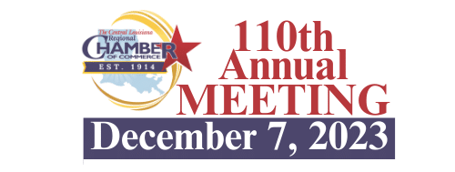 Please make plans to join the Central Louisiana Regional Chamber of Commerce for its 110th Annual Meeting, on Thursday, December 7, 2023, from 11:00 a.m. to 1:00 p.m. at the Randolph Riverfront Center, Alexandria. The Annual Meeting typically brings together over 400 business and industry leaders from throughout the region. The Annual Meeting and Luncheon