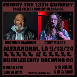 National touring comics Roderick McDaniel and Cody Miears take their traveling show to Alexandria, Louisiana!