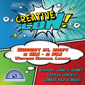RPL’s “Creative Con” is out library’s friendly neighborhood local Comic Con. This year’s them is Star Wars! You can expect panels, vendors, games, virtual reality, and cool photo opportunities! It’s not Creative Con without costume contests! There will be costume contests for all ages – adult, teen, children under 13 and group categories. Winners win a gift card to BAM. Potential guests may include the 501st Legion and the Mustafar Temple. There will also be costumed characters to meet and interact with. We will make a cool craft – a lightsaber made out of pool noodles! Don’t miss this exciting annual event at RPL!