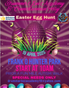 Drummer Boi Academy along with Councilwoman Perry Hosted by Prolific Elite Rydaz & Advance America will be having an Easter Egg Hunt for special needs individuals. This will give them a sensory friendly experience.