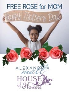 Every mom deserves to feel special this Mother’s Day. FREE rose for Mom, May 11th 12PM by the Alexandria Mall Food Court. Provided by House of Flowers and Alexandria Mall. While supplies last, first 125 guests.