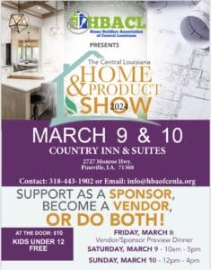 The Home Builders Association of Central Louisiana is proud to announce the return of the HOME & PRODUCT SHOW 2024!