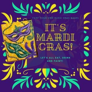 It’s everyone’s favorite time of year…carnival time!! Join us to create a custom Mardi Gras mask painting. An artist will guide you step by step in a pre-sketched painting, from beginning to final masterpiece. The painting can be customizable with colors and extras. Price includes all materials to complete the entire painting.