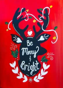 Fun & Festive reindeer!! Includes 11X14 canvas, all supplies and step-by-step instructions. Beginners welcome and all painters leave with a finished project. So, gather up your friends and let’s paint together! (class limited to 10 painters)