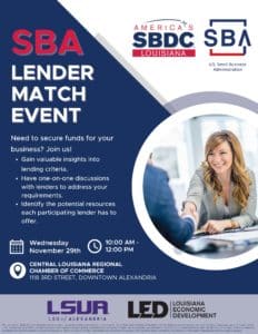 Ready to gain the knowledge needed to secure commercial funding? Don’t miss the SBA Lender Match Event! Whether you’re seeking funding now or foresee it in the near future, this is a fantastic opportunity to enhance your understanding of lending criteria, enabling you to make well-informed financial decisions for your business.