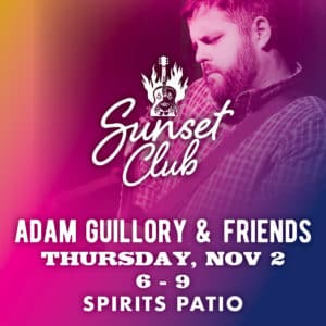 Join us for Thursday Sunset Club on the Spirits PATIO with live music with Adam Guillory & Friends! This trio features vocalist and guitarist Adam Guillory, keyboardist and vocalist Sean Jude, and drummer Craig Lacour. Bring your patio pup, your patio-lovin’ friends, grab a patio cocktail and come meet us outside…