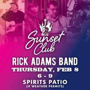 Join us for Sunset Club with the Rick Adams Band (on the patio if weather permits)! Grab a drink to warm you up, bring your friends, and chill with an acoustic Americana mix or uptempo, foot-tappin, fun roots music!
