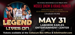 Hear all the hits, see the moves, and relive the magic of Elvis Presley like never before. Tickets go on sale Friday, April 11 at the Coliseum Box Office or at Ticketmaster.com. Don’t miss your chance to experience The King!