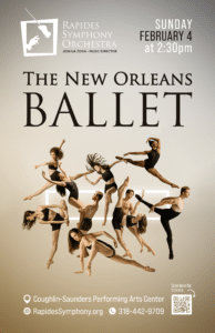 A return appearance by the dancers of the New Orleans Ballet opens the Rapides Symphony Orchestra’s season with the Symphony performing music of Tchaikovsky, Vivaldi, and Debussy featuring Symphony harpist, Deborah Goppelt.