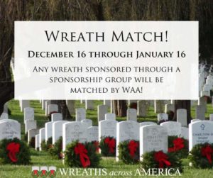 Now through January 16, 2024, Wreaths Across America is doing a nation wide Wreath Match. This is the only time of the year this occurs.